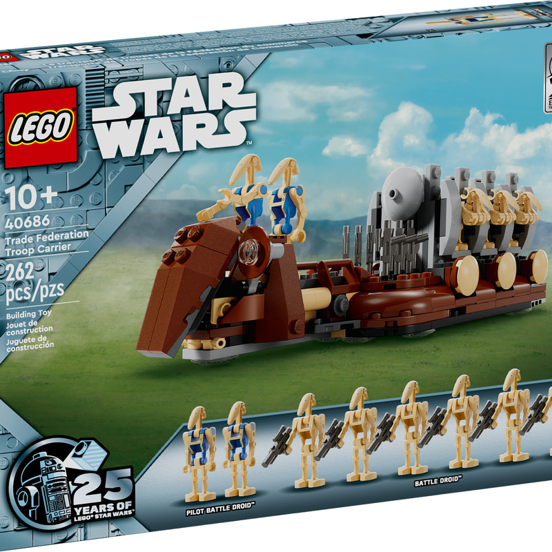540円相当のプレゼント。ポリバッグ使用だが、エピソード1の25周年記念のロゴが入っている。通商連合兵員輸送車と同様にエピソード1のナブーの平原でのグンガンと通称連合の戦いを再現しているセット。映画ではAATでグンガンのシールドを砲撃した後、バトルドロイドを展開し、本格的な戦闘がスタートする。